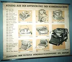 - ^ Dingwerth, Leonhard (2008). Die Geschichte der Deutschen Schreibmaschinen-Fabriken, Band 1: Große und mittlere Hersteller [The History of the German Typewriter Factories, Volume 1: Large and Medium-Sized Manufacturers]. Delbrück: Verlag Kunstgrafik Dingwerth GmbH. p. 86. ISBN 978-3921913383.