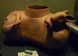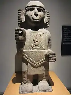 In Aztec mythology, Ometochtli (pronounced [oːmetoːtʃtɬi]) is the collective or generic name of various individual deities and supernatural figures associated with pulque (octli),[1] an alcoholic beverage derived from the fermented sap of the maguey plant.[2] By the Late Postclassic period of Mesoamerican chronology a collection of beliefs and religious practices had arisen in the context of the manufacture and ritualistic consumption of the beverage, known as the "pulque (or octli) cult" with probable origins in a mountainous region of central Mexico. In Aztec society octli rituals formed a major component of Aztec religion and observance, and there were numerous local deities and classes of sacerdotes ("priests") associated with it.[3]