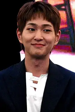 In 2010, Onew tried his hand at songwriting and, together with his bandmate Minho, wrote the lyrics for the song "Your Name" from Shinee's second studio album Lucifer.[8] In addition to music, Onew became an MC of two programs—KBS2's Night Star, which he co-hosted alongside Shin Dong-yup, Yoon Jong-shin, movie director Jang Hang Joon, and Leessang's Gil,[9] and MBC's Show! Music Core.[10] Since his first job as an MC, Onew has hosted various events, such as Dream Concert, Incheon K-Pop Concert and Mnet's special event in Taiwan called Nihao Taiwan.[11][12][13]