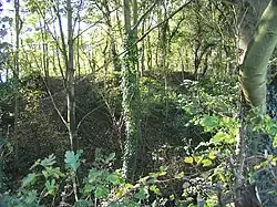 A stone keep was built on top of the motte around 1086, which was confiscated by Richard III in November 1483[3] after he had Henry Stafford, 2nd Duke of Buckingham executed for treason, and then was later given by Henry VIII to William Morice in 1541, but this was pulled down by Morice sometime between 1558 and 1579, and he had it replaced by a brick building,[3] itself destroyed in the 18th century. The motte itself is now covered with trees and is in private ownership, but can be seen from a public footpath that starts at the north end of the High Street.