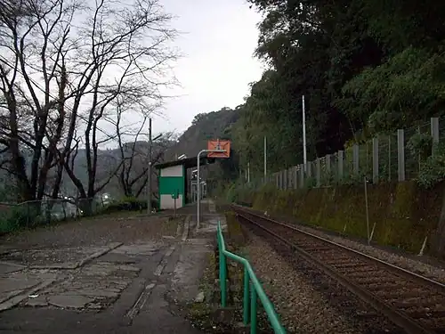 The station, which is unstaffed, consists of a side platform serving a single track on a side hill cutting. There is no station building, only a shelter on the platform and a toilet shed. A long ramp leads up to the platform from the access road.[2][3]