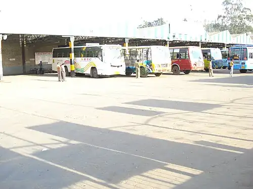 The bus stand having about 10 platforms serves nearby towns of the district. The major operators from the bus stand are state–run TNSTC (Coimbatore, Kumbakonam, Tirupur, Erode and Salem),[3] SETC (Trichy, Kanyakumari, Thiruvananthapuram and Chennai),[4][5] Karnataka State Road Transport Corporation (Bengaluru, Mysuru, Mercara and Hassan)[6][7][8] and Kerala State Road Transport Corporation (Sulthan Bathery, Kannur and Malappuram).[9] To deposit luggage cloak room facility available in bus stand, 10 Rs per bag 8 hrs. No private operators were allowed to ply within the district.[10]
