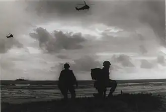 ![]() Marines of the 26th Marines wait for the word to ‘move out’ after coming ashore to begin Operation Bold Mariner | |||||||
