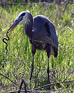 The golden eagle will actually eat snakes, but does not specialize in them, preferring larger mammalian prey, from medium-sized rodents and lagomorphs to mustelids even small mammalian carnivores, all the way to deer fawns and lambs. However, snakes are the most common type of reptile to appear in the golden eagle's overall diet, making up about 2.9% of the remains from all studied golden eagle nests.[2]