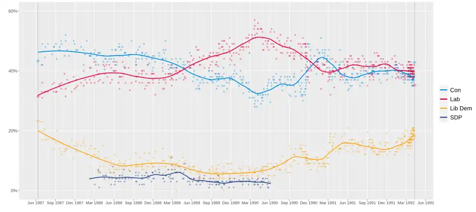 | 9 Apr | 1992 general election[4] | 42.8% | 35.2% | 18.3% | 7.6% | |