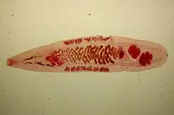 The definitive hosts are fish-eating mammals such as dogs, foxes, cats, rats, pigs, rabbits, seals, lions, wolverines, martens, polecats and humans.[4]