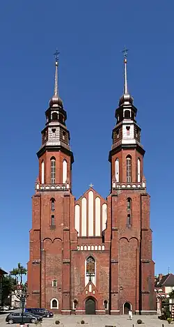 The Cathedral of the Holy Cross (Polish: Katedra Podwyższenia Krzyża Świętego), also called Opole Cathedral,[1] is a religious building affiliated with the Catholic Church that serves as a parish church and the cathedral city of Opole[2] in Poland.[3] The church belongs to the parish of the Holy Cross in Opole in the deanery of Opole, part of the Roman Catholic Diocese of Opole (established in 1972). On April 3, 1964, the temple was entered in the register of regional monuments of Opole under number 763/64.