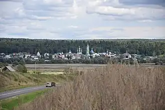 The Optina Pustyn (Russian: Óптина пýстынь, romanizedÓptina pústyn', literally Opta's hermitage) is an Eastern Orthodox monastery for men near Kozelsk in Russia. In the 19th century, the Optina was the most important spiritual centre of the Russian Orthodox Church and served as the model for several other monasteries, including the nearby Shamordino Convent. It was particularly renowned as the centre of Russian Orthodox eldership (staretsdom).