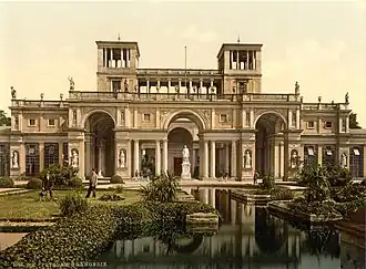 The Orangery Palace (German: Orangerieschloss) is a palace located in the Sanssouci Park of Potsdam, Germany. It is also known as the New Orangery on the Klausberg, or just the Orangery. It was built on behest of the "Romantic on the Throne", King Friedrich Wilhelm IV (Frederick William IV of Prussia) from 1851 to 1864.[1]