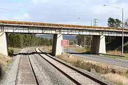 The Yallourn branch was opened from Hernes Oak (between Moe and Morwell) to Yallourn in 1922 to serve the adjacent power station development. It was replaced by a line from Moe to Yallourn in 1953 because its route was required for brown coal mining,[4] but the new line closed in 1987, having been disused since the late 1970s.[4][5]