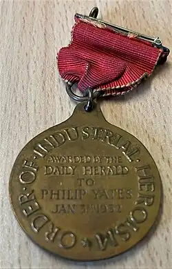 - ^ "Daily Herald Order of Industrial Heroism medal". National Museum Wales. Retrieved 20 May 2019.