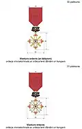 | Type | 5 class Order, with three honor medals. Awarded with swords (military) and without (civil). |