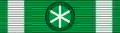 The badge was a gilt starburst for the 1st-5th classes and different design in gilt for the 6th class and in silver for the 7th class. It was suspended on a ribbon in blue-green with a white stripe near the edges, worn as a sash on the left shoulder by the 1st class, as a necklet by the 2nd and 3rd classes, on the left chest by the 4th and 5th classes. The badges for 6th and 7th classes were non-enameled.