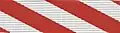 The badge could be worn either from a collar composed of red enameled plaques bearing white crescents and stars, or from a wide bow ribbon of red and white diagonal stripes, with a short enameled gold chain similar to the collar around the center of the ribbon. The ribbon bow was to be worn only when no ribbons or sashes of other orders were worn simultaneously.[4]