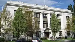 The Oregon Supreme Court Building currently houses the courtroom for the Supreme Court and the state's law library.[5] This single courtroom is also home to where oral arguments are heard for the Oregon Court of Appeals,[15] while the building is home to Oregon Judicial Department.[16] The Supreme Court's courtroom and offices for the justices are located on the third floor.[14] This building is the oldest state government building in Oregon.[5] In 2006, new security measures were implemented at the building that require visitors to sign in with an Oregon State Police officer who is posted at a security desk near the main entrance to the building on the first floor.[17]