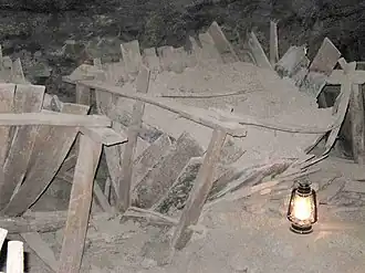 The cave was used since before 1835 as a source for nitre (saltpeter) for the manufacture of gunpowder. During the American Civil War, Confederate soldiers under the command of General Robert E. Lee again mined the cave for nitre. The cave today has the nation's largest collection of Civil War-era saltpeter hoppers. Studies have shown the cave dirt is high in calcium nitrate, which was turned into potassium nitrate using these hoppers.[8]