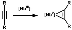 Similar to other d2 transition metals, Nb(III) produce adducts with alkynes. These derivatives are sometimes called Nb(V) alkenediyls metallacyclopropenes.[7] These alkendiyl complexes function as latent dianion equivalents. They react with electrophiles to give alkene derivatives.[7][8]
