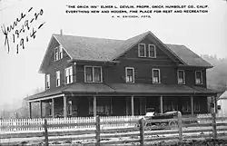 Robert Swan was a local rancher and businessman who owned the ferry and the local store, which was bought out by native Eurekan Elmer L. Devlin (August 1, 1877 - ?) who built the original Orick Inn.[10] Devlin's first building burned down in 1918 and was rebuilt by 1922. It was known for home cooked food,[11] as well as hosting fishermen and notables including opera singer Madame Ernestine Schumann-Heink, actors Fred MacMurray and Ronald Colman and President Herbert Hoover.[9]