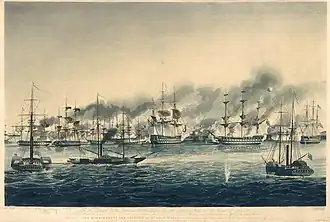 In 1839, the Ottoman Empire attempted to retake Syria from Muhammad Ali but was defeated by his son, Ibrahim Pasha in the Battle of Nezib. Thus, a new war between Muhammad Ali and the Ottomans escalated, with the latter failing once again to wage it successfully. In June 1840, the entire Ottoman navy defected to Muhammad Ali, and the French planned to offer full support to his cause.[1]