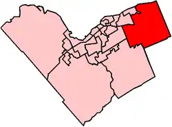 The ward contains the neighbourhoods of Chapel Hill South, Bradley Estates, Trailsedge, Chaperal , Avalon , Notting Gate , Notre-Dame-des-Champs , Navan , French Hill, Sarsfield , Leonard, Bearbrook , Vars , Carlsbad Springs and Canaan.