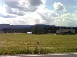 Orlík is located in the northeastern part of the Hrubý Jeseník range, specifically in the microregion known as the Medvědí Mountains.[2] It is the third highest peak of the Medvědí Mountains, after Medvědí vrch and Jelení loučky.[3][4] Orlík is a very expansive mountain, situated on two arms (ridges) of this massif: the main, arched ridge stretching from Zámecký vrch (1)[a] to Na vyhlídce (1)[b] with the main summit, and the side, arched ridge stretching from Kristovo loučení pass to Rejvíz pass with two secondary summits.[2] Orlík is a well-recognizable mountain, as it is located in the central pair of peaks Orlík and Medvědí vrch in this part of the Hrubý Jeseník range, having similar heights and being visible from the observation towers of both Praděd and Biskupia Kopa.[5] However, from another characteristic viewpoint – the road surrounding the summit of Dlouhé stráně – it is not visible as it is obscured by Velký Jezerník mountain.[5] Orlík is well visible, among others, from the summit of Medvědí louka and from the slopes of mountains such as Medvědí vrch and Jelení loučky. Additionally, it is visible and recognizable from the nearby road no. 445 from Rýmařov to Zlaté Hory, as well as from road no. 453 from Jeseník to Město Albrechtice passing through the village of Rejvíz.[5]