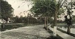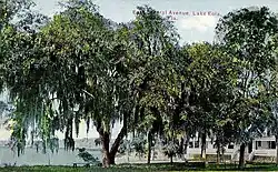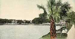 The legend grew throughout the early 1900s, particularly with local historian Olive Brumbaugh (or Kena Fries[20]) retelling in various writings and on local radio station WDBO in 1929.[14] Another historian, Eldon H. Gore, promoted the Reeves legend in History of Orlando published in 1949.[14] A memorial beside Lake Eola – originally placed by students of Orlando's Cherokee Junior School in 1939 and updated in 1990 – designates the spot where the city's supposed namesake fell.[19][20]