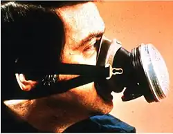 An orinasal mask, oro-nasal mask or oral-nasal mask[1] is a breathing mask that covers the mouth and the nose only. It may be a complete independent item, as an oxygen mask, or on some anaesthetic apparatuses, or it may be fitted as a component inside a fullface mask on underwater breathing apparatus, a gas mask or an industrial respirator to reduce the amount of dead space. It may be designed for its lower edge to seal on the front of the lower jaw or to go under the chin.
