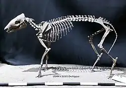 | Skeleton of Orohippus pumillus at the Smithsonian Museum of Natural History. | |