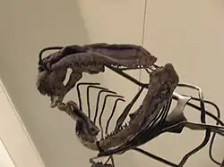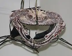 Orthacanthus and Triodus have a predator-prey relationship in which Orthacanthus preyed on Triodus.[15] Cranial remains of specimens of both Orthacanthus and Triodus from the Upper Carboniferous in Puertollano basin, Spain, give evidence of this predator-prey relationship.[15] Numerous and well preserved cephalic elements of Triodus were associated with the cranial remains of Orthacanthus, and is explained by the inclusion of occipital spines of Triodus in the buccal cavity of Orthacanthus.[15] Additional evidence is the co-occurrence of one Orthacanthus spine with many Triodus spines, which likely penetrated the soft tissue and cartilage of the mouth of Orthacanthus, similarly to modern sharks that feed on stingrays where the spines of stingrays have been found within and around the buccal cavities of Carcharhinus, Galeocerdo, Negaprion and Sphyrna.