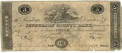 During the Panic of 1837, the Jefferson County Bank, along with every other bank in the state of New York, suspended the payment of its bank notes into precious metal coinage.[39]