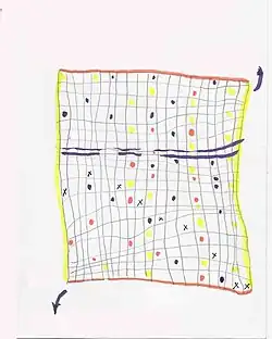 El Hecho [The Fact][5] (1998), due to its popularity and controversy, was performed over fifty times, which is unusual for a new opera. The work was made in memory of Juan Carlos Paz, inspired by Paz' graphic design, Seis eventos [Six Events] which was Paz' last work but which was never musically realised it was the first work to pay homage to the famous Argentine composer and in it Edelstein also makes reference to his thwarted attempt to study with Paz.[22] Performed with the Ensamble Nacional del Sur (ENS) and three actor-singers, in the story a caricature of a theoretician desperately tries to explain Paz's mysterious designs, whilst in contrast, a female character, who represents a voice that travels through time and space, makes references that could be taken as reminisces about the life of Paz. The character of Paz enters and listens to the two monologues, at first saying nothing but then finally shooting the theoretician, at which point "the voice" dies in Paz's arms and he recovers his voice, takes the gun and acts as if to shoot the other musicians (the ENS), including Edelstein as conductor, but finally puts the gun on Edelstein's piano. This tribute to the teacher he never had stirred debate about the position and relationship between the composer and the academy of music. The work was described as "brilliant" and "the most important opera in the story of Argentina."[23]