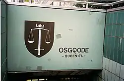 Osgoode is a subway station on Line 1 Yonge–University in Toronto, Ontario, Canada. The station, which opened in 1963, is located under University Avenue where it is crossed by Queen Street West and is named for the nearby Osgoode Hall, which honours William Osgoode, the first chief justice of Upper Canada.