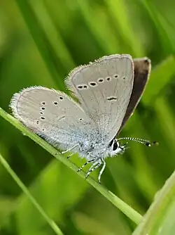 The Osiris blue (Cupido osiris) is a butterfly in the family Lycaenidae. It is found in South Europe, Asia Minor, southern Siberia, the Alay Mountains, Tian-Shan, Dzhungarsky Alatau, the Altai Region, the Sayan Mountains, Lake Baikal and Mongolia. It is often confused with the small blue, a closely related species.