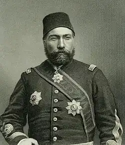 Osman Nuri Pasha (Ottoman Turkish: عثمان نوری پاشا; 1832, Tokat, Ottoman Empire – 4 to 5 April 1900, Constantinople, Ottoman Empire), also known as Gazi Osman Pasha (Turkish: Gazi Osman Paşa), was an Ottoman Turkish field marshal.[1][2] Being one of the most respected and decorated Ottoman pashas of all time, many songs have been written for him, and many places named after him. This is mainly because he held the Bulgarian town of Plevna for five months against superior Russo-Romanian forces in 1877 during the Russo-Turkish War, though the city eventually fell.