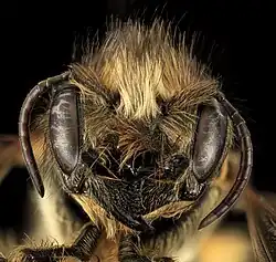 Osmia cornifrons, also known as the horned-face bee, is a species of solitary bee indigenous to Northern Asia. Physically, this species of bee is recognized for its horn-like extensions originating from its lower face. Populations of O. cornifrons have been recorded in multiple locations, including Japan, Korea, China, and Russia. O. cornifrons are more docile as compared to other species of bees and are less prone to sting when aggravated.