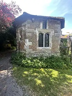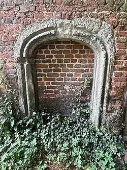The Inner Courtyard was surrounded on three sides by galleries. The northern cloister, with eleven now-filled-in brick arches above a ragstone plinth, is a small remnant and is located between the Northwest Tower and the Gatehouse remnant. Some arches now contain modern windows. Originally, at first-floor level, there was a gallery with a tiled roof, possibly with a timber frame. This gallery formed a circuitous walkway with glazed windows, allowing exercise in poor weather or after dark, and providing a space for discreet conversation. This may have been England's first galleried house.[9] There do not appear to have been any original windows in the outer wall of the galleries.[6]