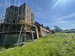 The principal surviving remains are the North-West Tower, the lower gallery (now converted into cottages), and part of the Great Gatehouse. There are additional remains on private land, and a section of the boundary wall can be seen on Bubblestone Road. The entire site, covering about 4 acres (1.6 ha), is designated as an ancient monument.[8] The village also contains related buildings, including a wall in St Bartholomew's Church dating from c. 1050.