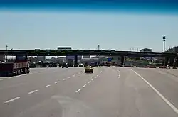 The O-4 begins at the intersection with the O-1. The next interchange is in northern Ataşehir with the O-2 .[1] After the motorway crosses Necip Fazıl Boulevard, the last toll-free exit in Istanbul (K1), the O-4 becomes a toll-motorway at the Çamlıca toll booths. The first tolled exit is exit K2, which is the Samandıra-Kartal connector, that is the first of several connections to the D.100.[2] Exit K3 connects to Fatih Boulevard in Sultanbeyi.[3] The interchange with the O-7 is located just as the O-4 enters the district of Pendik. Exit K4 is located right on the eastern border of the Pendik district and connects to the Sabiha Gökçen Airport.[4] After exit K4, the O-4 enters the last district in Istanbul, Tuzla. Exit K5 (Orhanlı junction) also offers a connection to the Sabiha Gökçen airport as well as the Kurtköy-Pendik connector.[5] The O-4 continues through northern Tuzla, passing through mostly industrial parks until leaving the Istanbul Province and entering the Kocaeli Province.
