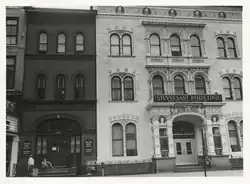 The city also had numerous private libraries, such as the Astor Library and Lenox Library, but few libraries for the general public, especially for immigrants and the poor.[8][9] One of the first general-public libraries to be established in New York City was the New York Free Circulating Library (NYFCL), having been incorporated in 1880,[8][9][10] with its first branch opening on Bond Street in Lower Manhattan that year.[11]