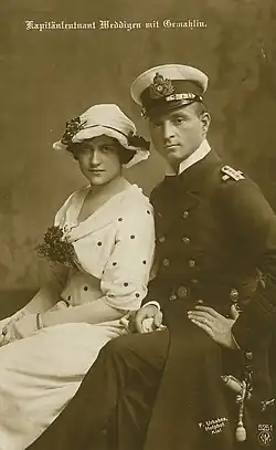 A few days after the start of World War I, Weddigen set sail from Heligoland with U-9 and nine other submarines for her first mission. This first war action by the German submarines failed. U-13 and U-15 were lost and U-9, battered and with technical problems, had to return to the Imperial Shipyard in Wilhelmshaven. Weddigen used the weeks of rest to marry Irma Victorine Prencke (1892-1976), a friend from his childhood.