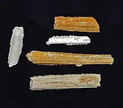 The late Maastrichtian deposits of the Khouribga Phosphates preserve abundant mosasaur fossils, especially isolated teeth. At least fifteen species are represented, covering the majority of ecological niches the group is known to have occupied.[28] The Ouled Abdoun Basin is one of the richest known mosasaur fossil sites in the world.[28]