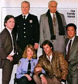 Launched as a two-hour made-for-television movie, Our Family Honor is about two New York City families who had known each other since their childhoods and who were involved in competing "family businesses". The McKay family mostly worked for the New York City Police Department, where Patrick (Kenneth McMillan) was Commissioner, while the Danzigs were deeply involved in organized crime, with patriarch Vincent (Eli Wallach) filling the role of "godfather". Barbara Stuart played Vincent's wife, Marianne Danzig, while Michael Madsen played Vincent's cruel but inept son, Augie, who was nonetheless his heir apparent. Detective Sergeant Frank McKay (Tom Mason) was Patrick's often hot-headed son, Liz McKay (Daphne Ashbrook), Patrick's niece, was a newly graduated officer now partnered with Officer Ed Santini (Ray Liotta, in a recurring role). She was romantically involved with Vincent's other son, Jerry (Michael Woods), who wanted out of his father's business and used the name "Jerry Cole" in order to minimize any connection with his father's family. Despite the program's large budget and large, impressive cast, it was cancelled due to low ratings. The show ended with Augie dying in a gunfight with Frank, who was coming to arrest him for his involvement in the murder of Rita's lover.[5]
