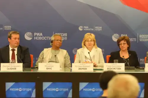 In the summer of 2019, the Foundation organized a visit to Moscow for the Nobel Peace Prize laureate, social entrepreneur Muhammad Yunus. Within the framework of the visit, a press conference was held summing up the results of the International Social Business Day and the presentation of Yunus's book "The World of Three Zeros".[101][102]