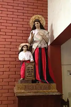 | Attributes | Virgin Mary wearing a traditional Filipiniana (balintawak) dress and rosary, with the Child Jesus in Katipunan attire, bolo, and the banner stating Ama ko sumilang nawa ang aming pagsasarili ("My Father, may our independence be born") |