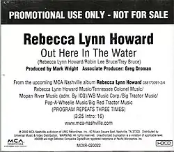 "Out Here in the Water" is a song co-written and recorded by American country music singer-songwriter Rebecca Lynn Howard, released as the second single from her self-titled debut album (2000) on February 7, 2000. Howard co-wrote the track with Trey Bruce and Robin Lee Bruce, with Mark Wright producing it. Although it was not a commercial success, it was the highest-peaking single from Howard's debut album, peaking at number 54 on the US Billboard Hot Country Songs chart.