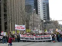 Iraq War – a protracted armed conflict in Iraq lasting from 2003 to 2011, which began with the invasion of Iraq by a United States-led coalition that overthrew the Iraqi government of Saddam Hussein.[1][2] The conflict continued for much of the next decade as an insurgency emerged to oppose the coalition forces and the post-invasion Iraqi government. US troops were officially withdrawn in 2011.[3][4] The invasion occurred as part of the George W. Bush administration's war on terror following the September 11 attacks.[5][6]