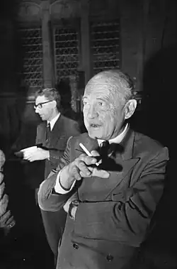 In March 1950, in executive session of the Tydings Committee, Senator Joseph McCarthy accused Lattimore of being the top Soviet agent, either in the US, in the State Department, or both.[27] The committee, chaired by Senator Millard Tydings, was investigating McCarthy's claims of widespread Soviet infiltration of the State Department. When the accusation was leaked to the press, McCarthy backed off from the charge that Lattimore was a spy but continued the attack in public session of the committee and in speeches.