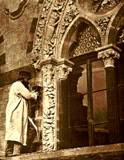 Statues of eminent men of science stand around the ground floor of the court—from Aristotle and Bacon through to Darwin and Linnaeus. Although the university paid for the construction of the building, the ornamentation was funded by public subscription, and much of it remains incomplete. The Irish stone carvers O'Shea and Whelan had been employed to create lively freehand carvings in the Gothic manner. When funding dried up, they offered to work unpaid, but they were accused by members of the University Convocation of "defacing" the building by adding unauthorised work. According to Acland, the O'Shea brothers responded by caricaturing the members of Convocation as parrots and owls in the carving over the building's entrance. Acland insists that he forced them to remove the heads from these carvings.[9]