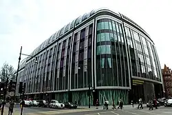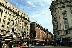 The opening of Britain's first out-of-town shopping centre at Brent Cross in 1976 prompted experiments with mall-style shopping precincts on Oxford Street. West One was developed by the Grosvenor Estate on the corner of Davies Street as part of the rebuilding of Bond Street tube station for the Jubilee line in 1979; it opened the following year.[40] In 1986 The Plaza shopping centre was opened within the walls of the former Bourne & Hollingsworth department store building (dating from 1925–1928), the latter having closed three years earlier.[41] The Plaza itself closed in 2016 and a flagship Next store was opened on the site.[42]