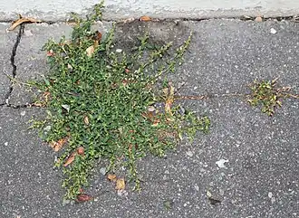 Oxybasis glauca[1] (syn. Chenopodium glaucum), common name oak-leaved goosefoot,[2] is a species of goosefoot plant native to Europe. It has been introduced and become an invasive weed in North America. This invader of European origin also appears in trampled communities in North Korea.[3]